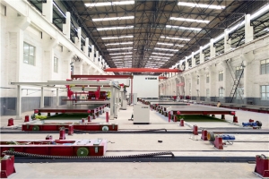 PC構(gòu)件生產(chǎn)流水線采用現(xiàn)代工業(yè)做法,工作模臺流轉(zhuǎn)作業(yè),實(shí)現(xiàn)住宅預(yù)制構(gòu)件批量生產(chǎn),將傳統(tǒng)現(xiàn)澆工地大量立體分散的工作,轉(zhuǎn)移至工廠,大幅提高了功效,同時大量節(jié)省人工。